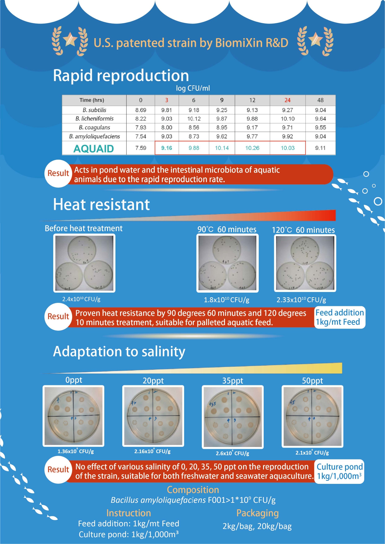 Composition: Bacillus amyloliquefaciens F001 1 × 10 ^9 CFU/g