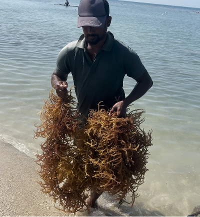 Vice President Sung in one of our partner's cultivation area in the South-East of India during a collect of red algae.