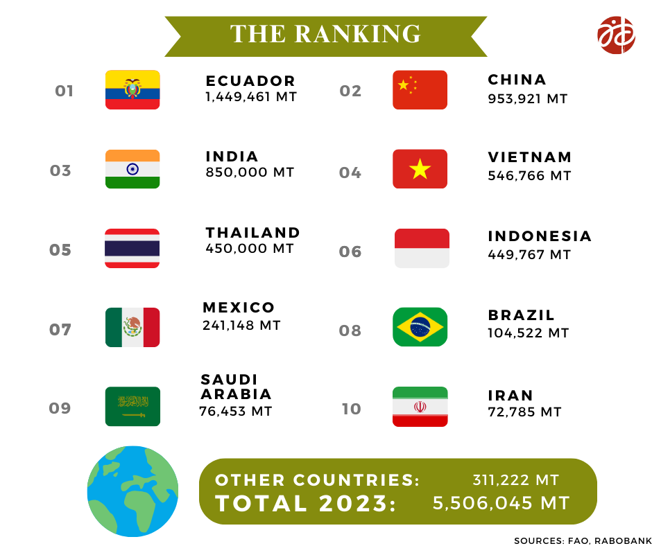 With global shrimp demand projected to surpass 7 million tons by 2030, Ecuador has maintained its position as the leading producer for the past three years, outpacing major competitors like India and China. This success is attributed to several key factors that have propelled Ecuador's shrimp sector to the forefront of global production.